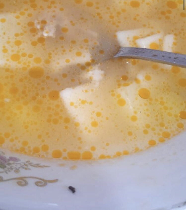 Такое куриное мясо представляют на 80 детей но на это внимание никто не обращал, родители детей не раз поднимали вопрос по поводу еды, врачебной помощи, а так же как могла попасть муха в тарелку.